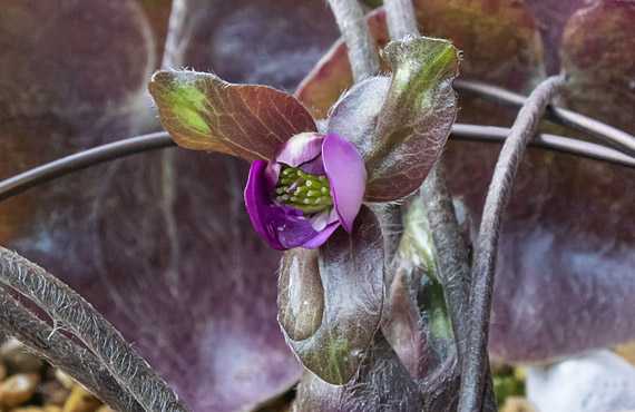 セリバオウレンが開花に向けて秒読みに入った様です。既に1株に3輪ほど存在するツボミの内、1輪は苞葉から身を乗り出して半開きになっています。すぐにでも完全に脱出して開花しそうな雰囲気ですが、その足を引っ張っているのが、クネクネと折り曲げてツボミと一緒に苞葉内に収まった花軸です。この花軸が外に出さえすれば、その勢いに押されてツボミも外に押し出され開花してしまいそうです。 気候的にはこの2~3日は温暖周期と予想されていて、最高気温は10~13℃に達しそうです。そうなればこの暖かさに背を押されて一気に開花するかもしれません。仮にここで躓いて開花できなくても次の温暖周期(節分明け)には店開きできる筈です。