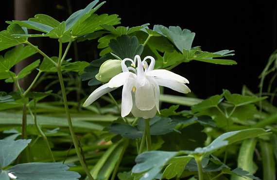 昨日取り上げたスズランと同様に、4/23が「見做し開花日」となってしまった白花ミヤマオダマキです。この形で開花日が決まったものに適用しても意味はありませんが、敢えて昨年と比較すると、1日早い開花・・・ということになります。 この花に自然界で出逢うのは、かなり標高の高いところになってしまいます。標高に言い換えると1000mから2500mの山域で、開花時期は7月後半になります。3ヶ月も早く咲く訳で、ワタクシなら精神に異常を来しかねない、環境の激変ですが、この子たちは健気に子孫繁栄に向き合っています。 芽出しに時期をリコリス群に頭上を覆われて、殆ど日差しを受けられずに過ごしてしまいましたが、程なくリコリスは休眠に入り葉を失うので、日差し基準に考えれば、やっと春を迎えることになります。