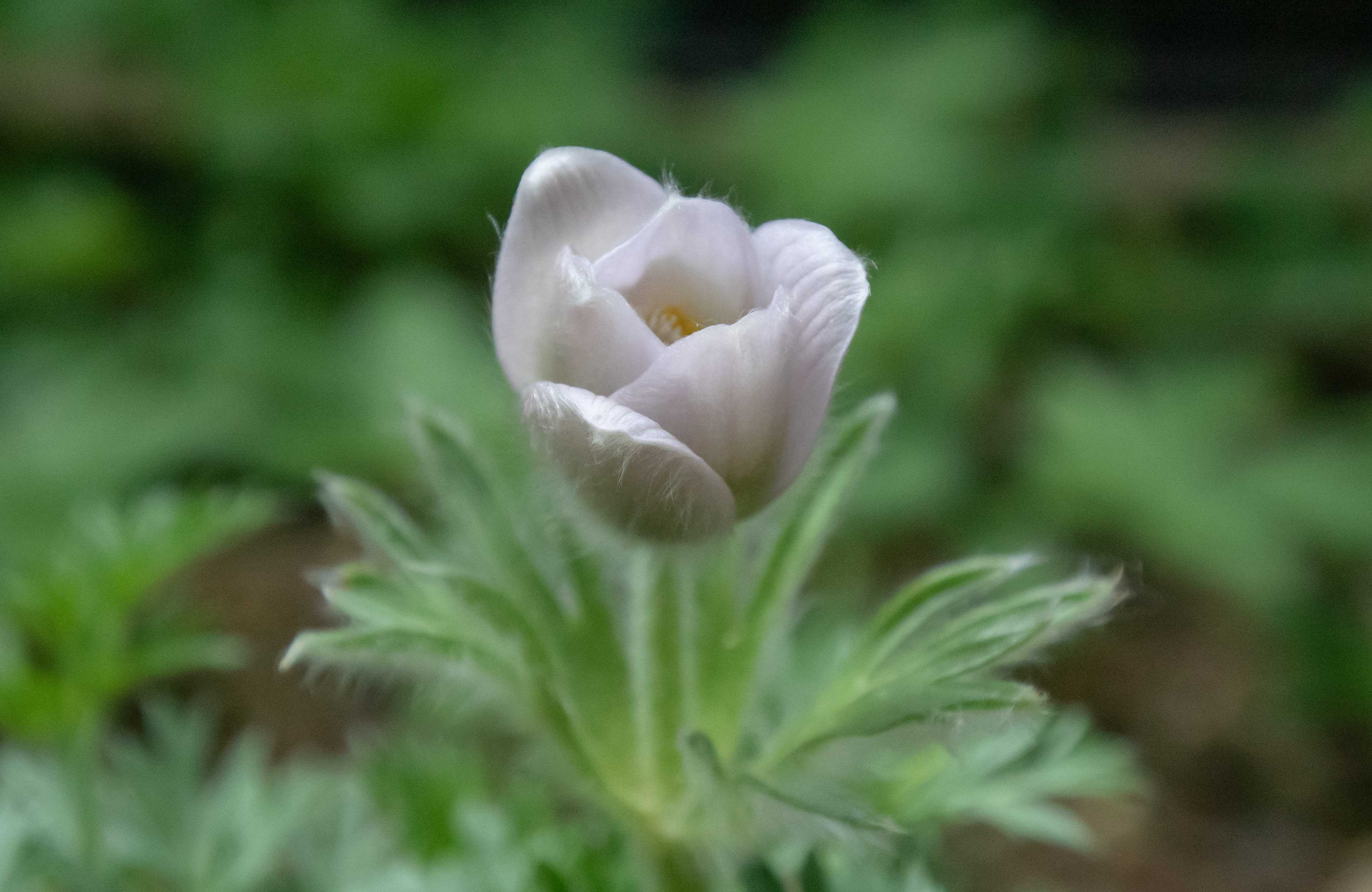 プルサチラ・ブルガリスの白花品が開花しました。長い長いご無沙汰だったので、直ちに「何年ぶり」かは浮かびませんでしたが、数年間の記録を遡ってみると”5年ぶり”であったことが判明しました。株は辛うじて枯死を免れ、健康状態は回復途上にあり、今年はこの1輪が精一杯という状況ですが、1年後には2輪か3輪、首を揃えられる様、サポートして行きたいと思っています。スタミナの温存、という観点からいうと、好ましいことではありませんが、何とか種子を採取して、枯死のリスクに備えておきたいと考えています。