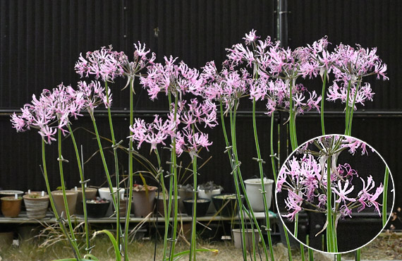 原種ネリネが咲き始めて2ヶ月経ちました。例年なら幕引きモードに入る頃なのですが、この冬は冷え込みがきつかったこともあって、今も8分を超える花が健在です。円内に比較的花の傷みが進んだ部位の様子を拡大して表示していますが、ここでも6~7分は傷みを感じさせません。因みに寿命が尽きた花は花弁がピンクから赤く変化します。但し寿命を終えても花が落下することはなく、生まれ付いた花軸で腐敗まで進みますが、大抵はそうなる前に花軸ごと刈り取る様にしています。・・・話が暗い方に流れてしまいましたが、この先、2月半ばくらいまでは花を楽しめるかもしれません。その頃には早春の山草が動き始める筈です。