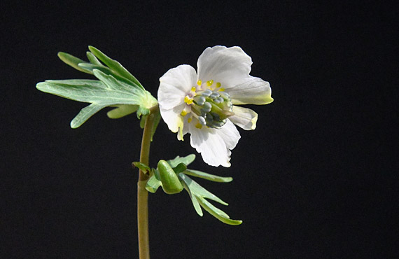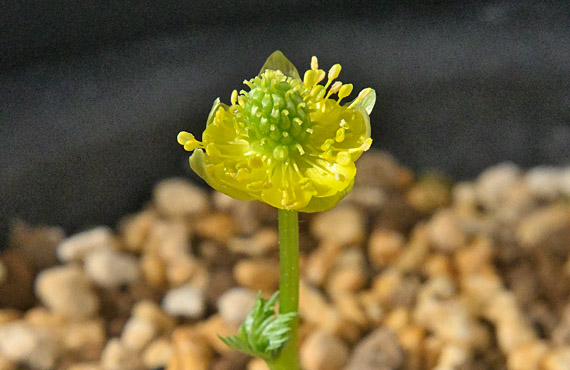 早春の花、セツブンソウが開花しました。屋内に収容していた「甘やかし」品なので、いつも付け加えている前年比較は省略します。屋外と比べれば幾分暖かい環境で生育を加速させたものなので、花の部位ごとの成長の度合いはバラツキが見られます。花弁は何とか開いたものの、花の差し渡し径は1.5cmほどしかなく、通常の自然環境で育ったものが2cmほどあるのと比べると一回り小さめです。また、雄シベや雌シベは未熟状態で束になった様に整列したままです。シベが無事に育てば、人為的に受粉させ、種子を採取してみます。 ところでこのポットの主たる住人は実生2年の若齢株なのですが、それらが芽出しする様子は見られず、最悪に事態を推測すると昨年の夏場の暑さで全滅・・・といった事態も想定しておく必要があるかもしれません。