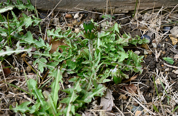 先月の記録的な大寒波で葉も花芽も全て枯れてしまった白花タンポポを、地上1cm以下で全て刈り取って、丸刈りにした件を紹介しました。それからまだ2週間も経っていませんが、早くも修復に取り掛かり、緑を取り戻しました。葉っぱだけでなく花芽も出しています。花芽は早ければ2日か3日で開花するかもしれません。いやはや何とも素早い立ち直りです。