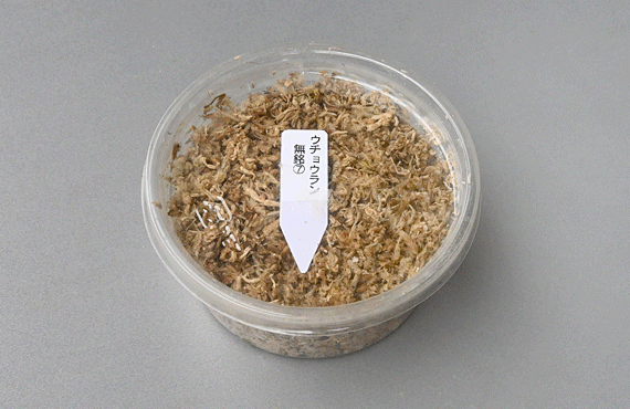 冬季の凍結被害を避ける目的で、培地から掘り上げ冷蔵保存していたウチョウランを定植しました。過去にはついつい定植のタイミングを失して、芽出しが始まったものを植え付ける、といったミスもありましたが、今回は芽出しはまだ始まっておらず、ちょうどいいタイミングだった様です。 昨年秋に撤収した時にはバルブは4個だったと記憶していますが、内1個は腐敗して皮だけになっていました。それだけを確認して、そそくさと定植にかかります。ミズゴケの裁断品と微粒の鹿沼土、赤玉土混合品を半々で混合した培地に植え付けて一丁上がりです。ウチョウランはあと2品冷蔵保存しており、これらも早い時期に定植に移すつもりです。