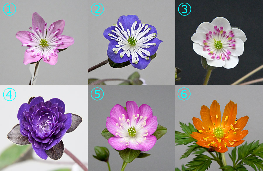 昨日紹介できなかった、3/1に入手して来た花苗の紹介です。画像の①、②は一昨日取り上げた品の再掲で、④以降が新たに取り上げるものになります。因みに、雪割草5点に銘はありません。 さて、③は二段咲・白花白シベ先端赤・・・というプロパティですが、配色に惹かれて連れ帰りました。続いて④は千重咲・濃紫、⑤は標準花・ピンクに白い文様が透けるという風に、これまで我が家では関わったことがない配色の品種です。 今回は雪割草以外を1点だけ混ぜました。それが⑥の福寿草「秩父紅」で、手頃な値付けの品を見付けてついついバスケットに入れてしまいました。この品も暑さには激弱ですが、夏の盛りは屋内に退避させるなどして命を繋いでみます。余談ですが、これら6点で栄ちゃん1人と柴ちゃん3人を人質として置いて来ました。