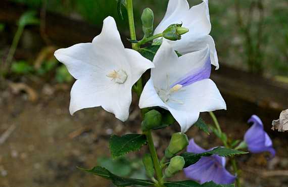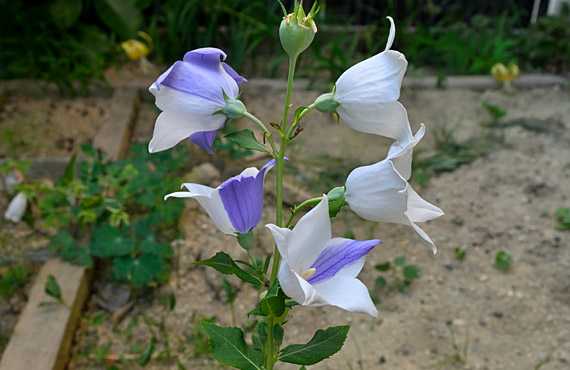 ハクサンシャジンの今年の1番花が開花して10日経ちました。この品種に限ったことではありませんが、咲き始めの頃に咲く花には、ちょっとした形や花弁の数など「ミス」を伴うことが少なくありません。理由は分かりませんが、1番花から10日も経つとそうした「ミス」は少なくなります。画像に収まった花茎も全体として形の整った個体が揃いました。 1番花を咲かせた花茎は、上の画像とは別のポットの花茎でしたが、全てのツボミを使い切ってしまいました。上画像は遅れて咲き始めた方のポットに咲いたものですが、フォーカスボケボケで写っている花茎には未開花のツボミが多数派です。こんな具合で、今年のハクサンシャジンは花茎ごとに少しずつ咲く時期がずれていて、見かけ上、花期が伸びた様に感じられます。一気に豪華に咲くのも見応えはありますが、今年のこの品種の様に長く楽しませてくれるのも、嬉しい咲き方です。