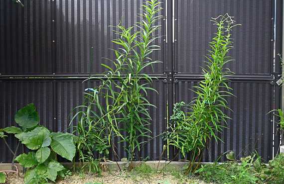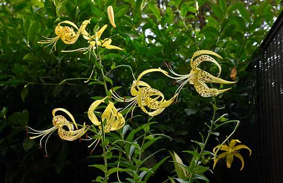 黄金オニユリの1番花開花から10日経ちました。既に花の峠(最盛期)は越してしまった様で、未開花のツボミと開花中の花の数より花の残骸(子房)の数が上回る様になりました。週明け早々には最後のツボミも開花し、更にその2日後には、祭りの後の風情を漂わせることになります。 然らば、その後をどうするかを考える時です。1ヶ月ほど前、まだツボミが青かった頃、本年1回目のムカゴ採取(事実上の駆除です)を行いましたが、既にその後に生成されたムカゴが成熟期にに入っており、2回目のムカゴ採取の必要性が増しています。この手間のかかる作業をこの先も続けて行くのも骨の折れる仕事であり、花の終了を見届け次第、茎は刈り払ってしまおうか・・・などという、鬼の所業と言われかねねないことも、頭の隅で膨らみつつあります。