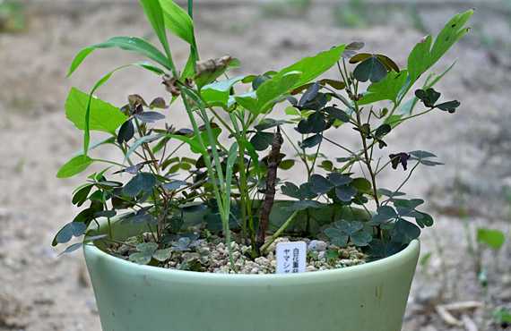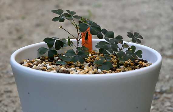 雑草駆除の第2報です。と言いながら、処理したポットは6鉢、内1鉢(ホウチャクソウ「肩紅花」)は、枯死を確認という、嬉しくない結果でした。 で、第2報の対象は福寿草の「秩父紅」です。1ヶ月半前に、休眠に入ったことを受けて定植したものです。侵入者(カタバミ)は、僅か1ヶ月半の間に、発芽 ➔ 株成熟 → 開花 → 結実 の段階まで進んでしまいました。来月初めには種子も成熟し飛散させることになるかと思います。そうなる前に身柄を拘束し、燃えるゴミとして処分することにします。こちらが駆除処理をを済ませた状態です。ご本尊が今も健全かどうかは確認はできませんが、秋には手入れを兼ねて地中の様子を確認することにします。