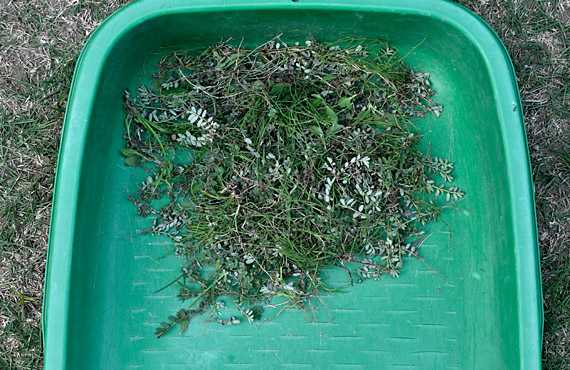 花鉢ばかりでなく、芝生でも悪質な雑草は繁茂しています。折に触れ紹介しているカタバミは四季の内三季に亘り暴れまくりますが、今最も深刻なものはスベリヒユ(上画像)です。ちょうど今、花が咲き始めており、これを見過ごせば1ヶ月後には大量の種子をぶち撒かれて、秋にはその種子が暴れまくる・・・という、負の連鎖に陥ってしまいます。 で、今回はスベリヒユに重点を置いた駆除を行うことにしました。太陽が威力を失う夕方5時頃から作業にかかり、1時間ほどで抜き取った雑草がこちらです。除草した範囲は1坪を少し超えるぐらいです。この雑草どもは速攻で燃えるゴミとして処分します。尚、芝生はあと3坪ほど残っており、今月一杯はかかり切りになりそうです。