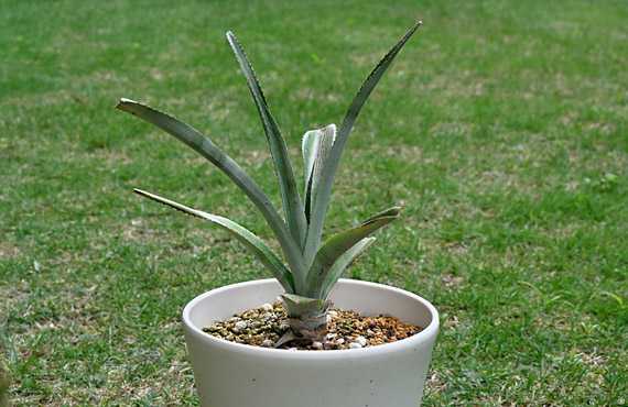 冬の間、凍死を避ける目的でポットに植替えて屋内に退避していたパイナップルを露地に戻しました。昨年は5月初めには露地に戻した様に記憶していまるのですが、今年はボ~っとしてる間に夏至を過ぎてしまいました(恥いわ!! )。遅れ馳せながら・・・ということになりましたが、何とか通常のサイクルに戻ってくれればいいのですが・・・ で、先ずは圃場の確保です。昨年と比べて、今年は自然薯を植え付けた関係で、スペース的には苦しくなっています。で、空スペースとしてミヤマオダマキ(白)脇の僅かなスペースに押し込むことにしました。こちらがその様子です。この個体にとっては、今回の植え替えで2回目のシャバ暮らしとなります。栽培指南サイト情報によると、この栽培スタイルの場合、3年目には実が生るらしいのですが、初年度は通年ポット住まいさせた関係上、今年は実の生成は期待できないかもしれません。気長に見守る他に手立てはなさそうです。