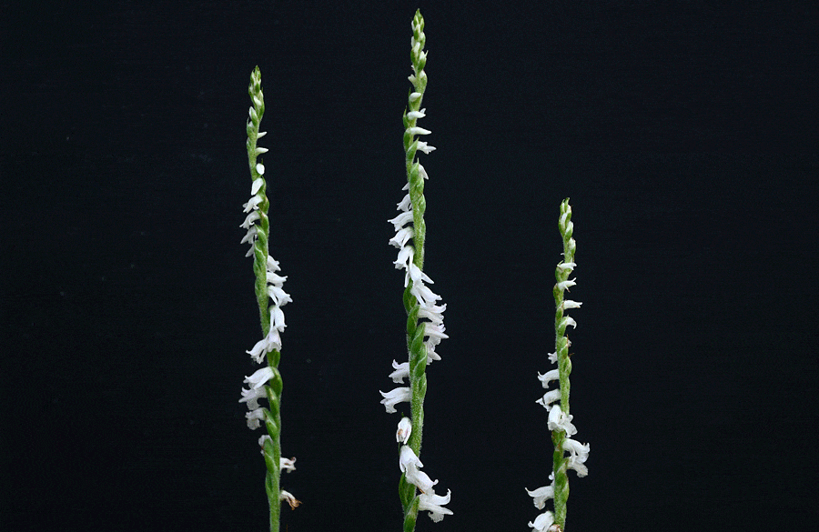 白花のネジバナ開花から3週間、赤花開花から1週間が経過し、最盛期に突入しました。この先2週間ほどは、今の程度の花が高原状に咲き続け、見る者を楽しませてくれます。上画像は紅白を切り替えて表示していますが、双方のボリューム感は圧倒的に赤花優位です。10日ほど前には「白花善戦」風な書き込みをしてしまいましたが、跳んだ見込み違いでした。 赤花画像について補足説明すると、ザックリ言って、左、中央部、右の3つの系統に分けられます。起源は異なる3点の個体から株別れを経て増殖したファミリーです。中央と右のファミリーは巻きの緻密さはそこそこですが、左のファミリーは巻き具合は甚だしく不真面目で、頭頂部まで1巻きのものもあります。巻きの真面目・不真面目はファミリー内で受け継がれる(遺伝)様ですが、右巻き、左巻きはファミリ内でもバラバラで、これは遺伝以外の要素で決まっている様です。