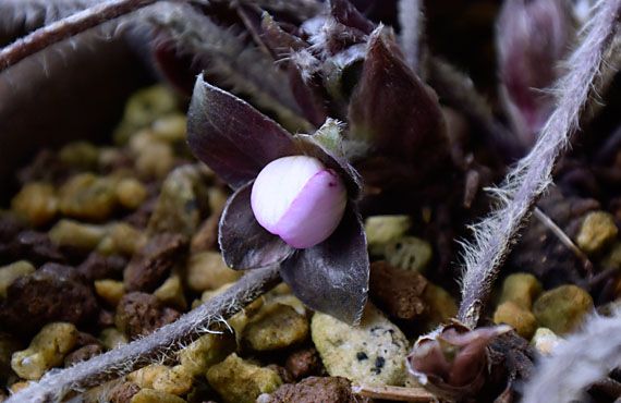 雪割草の3番手もここまで大きくツボミを膨らませてきました。先日は2番手がフリーズ状態に陥った旨紹介しましたが、こちらは日々目に見えるほどではありませんが、動きが感じられます。もしかすると開花はこちらが先になるかもしれません。とは言っても、その時期は2月に入ってからになりそうです。 この品種、画像の通り葉っぱや萼弁の他に、花柄や葉柄まで緑が一切見られません。別に葉焼けしてこうなった訳ではなく、春の新芽の頃からこんな状態です。芽出しの頃、こんな色で顔を出す品種もありますが、大抵は日差しを浴びている内に次第に緑に変化します。ところがこの品は各部の寿命の期間全体をこんな色で通してしまう変わり者です。 昨年夏のうちに、雪割草のかなりの点数が枯死したことはこの場でも紹介しました。生き残ったものの内、この春花を付けそうなのは4~5点に留まりそうです。この状態では、早春の花見が寂しすぎるので、今年も新潟市の展示即売会に出掛ける必要がありそうです。と言っても、3月上旬の北陸平野部に雪が残っていなければ・・・の話ですが ....