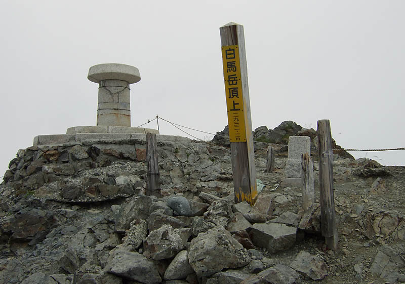 残り標高差は200mほど、コースの斜度はぐっと緩やかになりますが、疲労した足腰には楽ではありません。12:46山頂到着(左下)。猿倉から7時間近くかかってしまいました(昼食込み)。