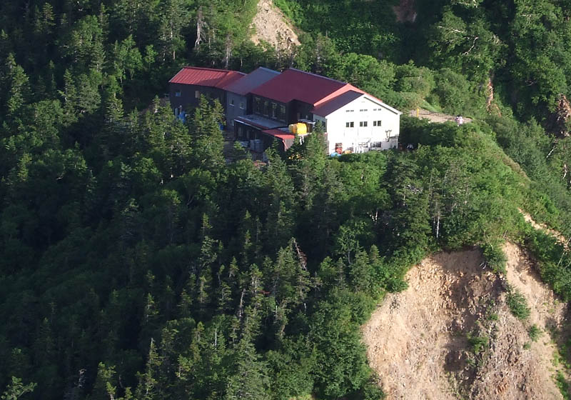 山荘を6時に出発して、爺ヶ岳に向かいます。この日の登りは合わせて250mほど、標高2670mの爺ヶ岳を過ぎると、後は降る一方の、楽チンなウォーキングです。尾根伝いのコースの終点になる種池山荘で、前夜意気投合した島根県からのパーティに追い付き、本格的なドリップコーヒーをゴチになりました。