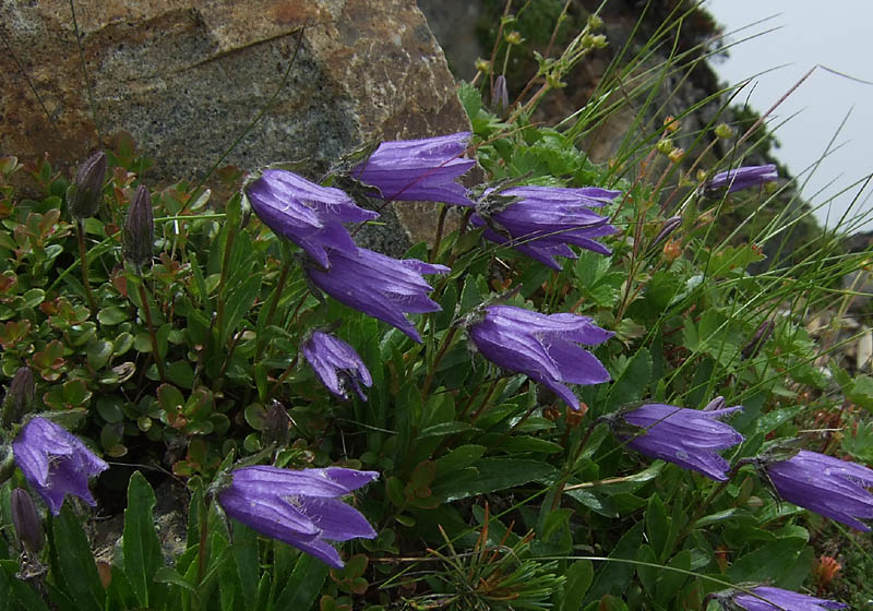左下はチシマギキョウで、後立山全域で咲いていました。他の山域(八ヶ岳や南アルプス)のものは、シアンに近い薄い色合いだったように記憶していますが、ここのは濃い色調が魅力です。