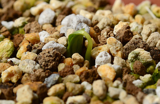 | 4日ほど前のこと、白花シラネアオイの種を蒔いたプランタで、画像にように用土から種子が浮き上がっているのが見つかりました。2月にも同じように何個かの種子が浮き上がって来たことがありましたが、この時は厳しい冷え込みにより霜柱ができ、その過程で用土と一緒に種子も持ち上げられたものでした。この時は当然のことですが、種子には何の変化も起きておらず、急いで元通り埋め戻してしまいました。 今回は氷結とは縁のない暖かさの元での出来事なので、もしや・・・ということで種子の足元の用土を少し掘ってみました。今度は種子の端から根が出ています。発芽の始まりです。一昨日になって、別の種子が 殻を脱ぎ捨てて 顔を出すのが確認できました。 昨日は強烈な風雨に見舞われましたが、このプランタで10芽の発芽が確認できました。2月に氷結で浮き上がった”事件”の影響がどうなるかは、もう少し様子を見なくては判定できません。何とかリカバリーできていればいいのですが・・・ |