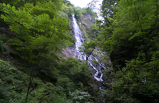 )、”大桂の湧水”に水汲みに出掛けました。通い慣れたルートで、取り留めて紹介する新ネタはありませんが、現場付近は画像のようにタニウツギ(谷空木)が満開を迎えていました。この他には、現地界隈はオキナグサ(翁草)の自生地だそうで、少し周辺を歩くと種子が完熟期を迎えて、綿帽子が飛散寸前の状態でした。 水汲みの後の行動は、通常は道草を食わず真っ直ぐ帰るか、稀に日本海側まで足を伸ばし、カニ三昧に耽るか・・・といったところですが、今回は少し趣向を変えて、兵庫県では最大の落差を誇るとされている「天滝」を見物することにしました。旧・八鹿町で県道272号に反れ、旧・大屋町に向かいます。片道15kmほど進んだところに駐車場があります。更に600mほどのところにも10数台止められる駐車スペースがありますが、混雑時は大変なことになるらしいので、下から歩くことにしました。歩行距離1.8kmほどで、2/3は結構急な山道ですが、よく整備されていて危険はありません。 滝の落差は98mだそうですが、下の方は斜面を何段かバウンドしながら流れ落ちるイメージで、どこからどこまでが98mなのか、分らないまま戻って来ました。今は雪解けも終って、水量の少ない時期だったようで、雨などで少し増水した時を見計らって訪れれば、大迫力が体感できるかもしれません。 |
