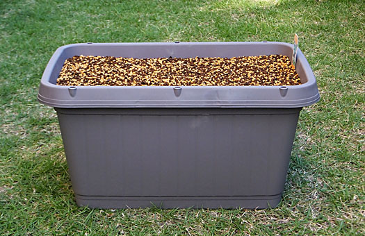 | 昨日取り上げた桶型プランタの住人、カタクリの顛末です。画像は別の7号ポットに植えていたものと合算した球根の状態ですが、総数28個が確認できます。プランタ、ポット双方とも深さは15cmほどしかなかったため、球根たちが一番快適な深さに身を置いた時、球根のお尻(下端)が鉢底石にくっ付く状態になっていました。この状態に目を付けたのがオシリカジリ虫(実はダンゴムシ)の連中で、水抜き穴や鉢底石の隙間から球根に辿り着き、食い物にしていました。中段の右2個がその被害者で、お尻部分はなくなっています。掘り出した時点では、空洞になったお尻部分に住み着いている不届き者も確認できました。 そんな実態を踏まえて、今回調達した 新居 は家庭菜園用の大型プランタで、用土の深さは25cm以上が確保できます。広さも30×45cmあり、分球が進んでも3年程度は耐えられるのでは・・・と、期待しています。問題はその重量で、45リットルの用土が水を含むと、大人でも1人で運ぶのは困難です。 |