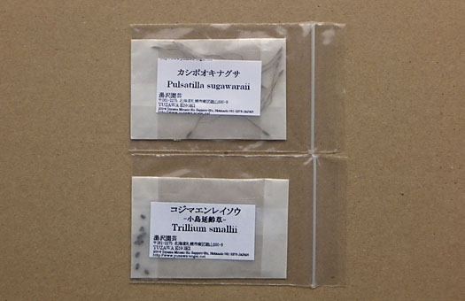 | 今年も夏の暑さを凌ぎ切れず、姿を消したものがたくさん出てしまいました。この時期は秋の手入れと共に、欠員補充の時期でもあります。ということで、今回は第1次補充として札幌の業者さんから調達しました。画像の2点はいずれもサクラソウの仲間で、左はネムロコザクラ(根室小桜)、右はプリムラ・マルギナータです。この他に 種子2点