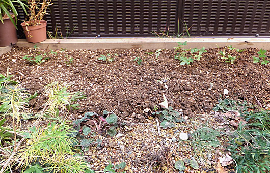 | 花壇改修工事の5日目です。このところ寒い日が続いているため、作業は休み休み・・・を通り越して休業状態が続いています。何が何でも霜が降り始める前に、画像の付近の用土かさ上げと共に、このシモツケソウ(下野草)の株分けと植え替えは済ませておかなくてはいけません。という訳で、最高気温10℃前後という冷え込みの中、覚悟を決めて外に出ました。 今年もシモツケソウは 豊作 でした。植えている範囲は2m足らずの範囲なので、小庭一面がピンクに染まるというほどにはなりません。株分けの目的は、この理想像に少しでも近付けるめのものです。まず現行の株を掘り上げ、跡地にポット、プランタの植え替えで発生した大量の古い土壌で埋め立て、5cmほどかさ上げしました。粘土質の従来の土壌とよく攪拌した後、古株を3~4分割して 植え戻しました 。シモツケソウ全量の半分が終了したところで、我慢の限界を迎え、この日の作業は打ち切ってしまいました。残り半分を分割して植え付ければ、幅は約4mに広がりそうです。定着に失敗するものも出るだろうし、今年の作柄は幾分の低下が避けられませんが、2年後には見応えのある花見が実現するはずです。 |