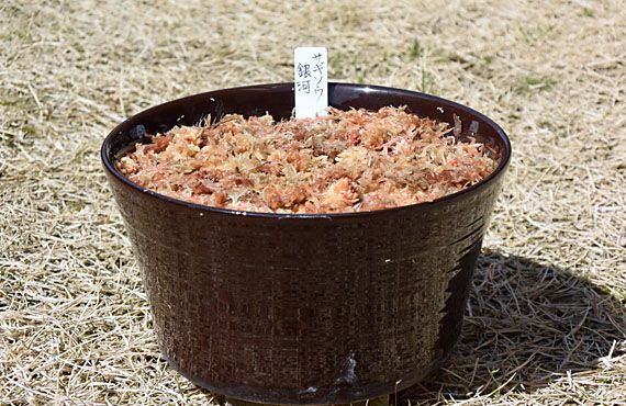 このサギソウもミズゴケ単用の培地に植え付けます。用意していた5号(15cm径)の浅め(8cm)の陶鉢に植え付けた様子 こちら 。今まで過ごして来た真っ暗な倉庫と比べれば、日中の気温はかなり上がるし、培地にはたっぷりの水分を含んでいます。多分すぐに動き始めるに違いありません。問題は芽を出した直後を、賊どもに狙われることですが、これは何らかの対策を考えなくてはいけません。