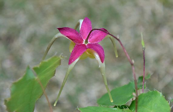 ところで一足早く咲き始めた「楊貴妃」は全5鉢が咲き揃うところまで来ましたが、うち一つで変り花が現れました。この品種は花弁や距、萼片は基本的に4枚なのですがこの程5枚のものが見つかりました。10年近く栽培して来て、初めて現れた珍現象です。キンポウゲ科の草花では、基本6枚の花弁が7枚だったり、5枚だったりと変化することは頻繁に起こりますが、イカリソウでは初めて見る姿なので少々興奮しています。 こちら がその5枚弁の個体ですが、変異はこの1輪だけの様です。