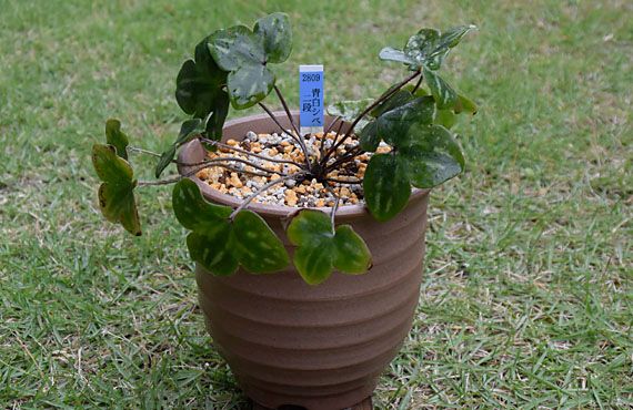 既に固まってしまった葉柄を傷めない様、慎重に苗用ポットから抜き上げます。枯れ残った昨年の葉っぱを葉柄の付け根で切り取り、この春芽吹いた新葉のみ残します。下ごしらえを済ませた株を、用意していた4号陶鉢にいつも通りの配合比の用土で植え付けた様子が こちら 。根が用土に馴染むまで、暫くは屋内に保管しますが、月が変わる頃には屋外の直射日光が避けられる環境に戻します。因みにこのポットを含めて最近植え替えた雪割草に関しては、余程のことがない限り、この秋の手入れはパスするつもりです。