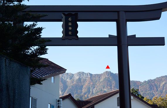 今回の登山コースは、西条市側から登山ロープウェーを利用するコースです。上画像がそのコースの断面です。7:45に山頂成就駅を出発、30分ほど未舗装の林道を歩くと、成就社に着きます。ここで初めて山頂部が見られるようになります(下画像▲)。