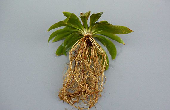 と思って株を掘り上げてみると、意外に 質素な佇まい でした。と言っても、生存を脅かすほど貧相という訳でもなく、今の体型を維持するには過不足はない、という水準かもしれません。何はともあれ、これなら”過密”の懸念はない訳で、向う1~2年は元の3.5号ポットで辛抱して貰うことにして、 植え戻して しまいました。