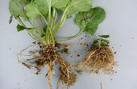 両者を掘り上げて並べてみたのが こちら 。左が露地から、右がポットから掘り上げたものです。両者は1年前まで同じポットに植えていましたが、昨秋半量をポットに残し、残り半量を露地に植え替えました。1年経ってこの体格差となったのは、露地の方が圧倒的に栄養豊富だからです。で、今年の植え替えでは露地で巨大化した個体をポットに戻し、ポットで貧相な体形になった個体を露地に移して、リハビリさせようとするものです。