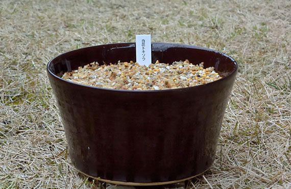 ことの”ついで”ということで、昨秋に掘り上げて冷蔵庫で定温(10℃)管理していた白花トキソウも定植を済ませました。 こちら がその様子ですが、培地は先に述べたトキソウと同じ混合培地です。