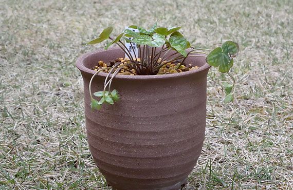 未熟の種子を散らさない様、優しく優しく塩ビポットから抜き上げます。用意したのは5号陶鉢です。新居に植え付ける際も、葉や種子に強い刺激を与えない様、気を使いながら新たな用土を充填して植え付けを済ませました。その様子が下画像です。半月ほどで種子は完熟すると思いますが、採り蒔きで全点発芽を目指します。