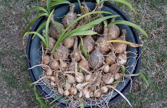 で、早速球根を掘り出してみると、出るわ出るわ。大はゴルフボールサイズから、小はピーナッツサイズまで 総数48個 もの球根が出てきました。凡そ2年で10個余りからこれほどに増えたことになります。全てを植え戻す訳にはいかないので、この中から12個を選抜し、元のプランタに再配置したのが下画像です。これに用土を被せ、隙間ができない様に割り箸でしごき、更に表土を突き均して植替えを終了しました。このプランタと同条件のものがあと3個あり、それらも梅雨の間に今回と同様に処理しようと思います。