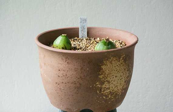 この健常バルブを定住先の4号陶鉢に植え付けます。用土は赤玉土と鹿沼土の微小粒に細かく裁断したミズゴケを混ぜたものです。この用土をポットに充填し平らに均した上で、バルブが5mmほど沈む程度に押し込んで”一丁上がり”です。屋外に置いては凍傷を負う恐れがあるため、春、花が終る頃まで屋内で過ごさせることになります。