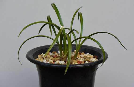ということで画像の枯れた葉っぱを全て根元で切り取ります。更には先が枯れてしまったものも、黄変部を切り取ります。全ての葉っぱが枯れたバルブは、老化が進んだ個体なので、外見から切り離し可能なものは切り離します。画像中心付近の個体がそれに当たるのですが、この個体は切り離し不可能なので、枯れた葉っぱを切り取っただけで”よし”としました。 こちら が作業を終えた状態です。