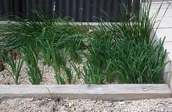その他の品種は?というと、「さつま美人」、「山の根ゴールド」、「アルビフローラ」はまだ気配なしです。最も進んでいるのが在来型のヒガンバナで、花が咲いている段階で葉を出し始めていただけあって、現在の進行状況は こんな 状態です。