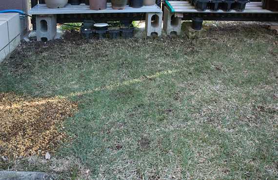 こうした雑草は1本1本手作業で抜き上げることになります。この日は暖かかったことで、甚だしい苦行とはならなかったのはラッキーでした。40分ほどで画像のエリアを駆除し終わり、念には念を・・・ということで芝にバリカンを当てて刈り揃えましたが、その様子が こちら です。これで全ての種子が発芽した訳ではなさそうで、この先1年程度は時間差で発芽するものに悩まされることになりそうです。とは言え、暖かくなるまでは好きにさせる外はありません。
