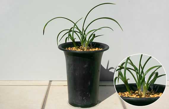 作業内容はすこぶる単純で、①枯れてしまったり、著しく健康状態の良くないバルブを切除し、②新しい用土で植え直す・・・これだけです。まず①については、完全に枯れたバルブ2点と葉っぱ1枚だけまで弱体化したバルブ1点を切り取りました。続いて②については、保水性を向上させる様、赤玉土と鹿沼土の配合比を幾分上げた用土で植付けました。 こちら が植替えを済ませた様子です。今年1年はリハビリ期間として、株立ちの強化を進めることを目指します。