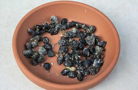 画像の様に表土を蹴散らして、半ば露出しているものもありますが、多くはしおらしく地中に身を隠しています。そうした隠遁派も表土を数mmめくれば表に出てしまいます。それやこれやを見付け次第捕獲して集めたのが こちら です。昨年もこれに近いものが発生した筈で、ポット内は相当な”押し競饅頭”状態と推測されます。来季に向けての新芽が生成される前に・・・ということは今の内に、過密解消のための植え替えを行う必要がありそうです。