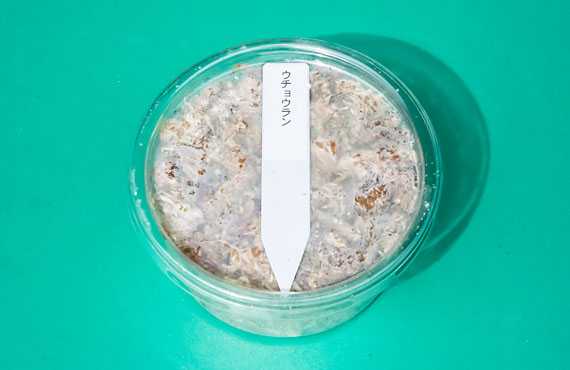 このバルブを軽く湿らせたミズゴケに包んで、ポリ容器に収容したのが こちら です。当面は「軽く冷やす」程度に留め、バルブに変化を起こす気力(?)があれば、それを妨げないことを第一にしました。庫内温度は10~15℃といったところかと思います。月2程度のペースで中を確かめ、必要に応じて施肥も考えることにします。