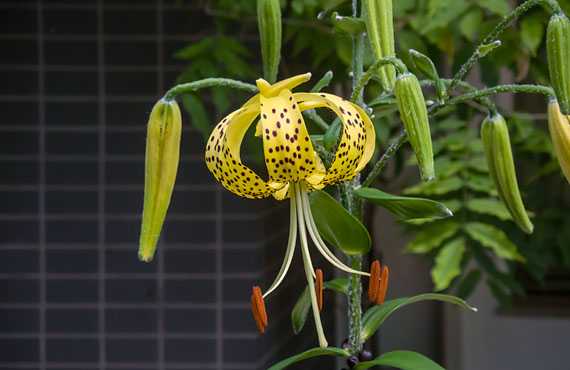 これらのツボミの形が整う前に、隣り合った2本の茎で上部1/4ほどが丸坊主になるほど食い荒らされるという”事件”がありました。散々食い散らかして、大豆粒ほどもあろうかという巨糞を残していましたが、日中、いくら探し回っても姿を発見することはできませんでした。それでも翌日には新たな巨糞が増えている、という日々が続いていましたが、最近はこうした被害も止まっており、羽化して成虫となって立ち去ったのかもしれません。時期をずらして再発しないか、少々ビビりながら日々の巡回を続けている昨今です。