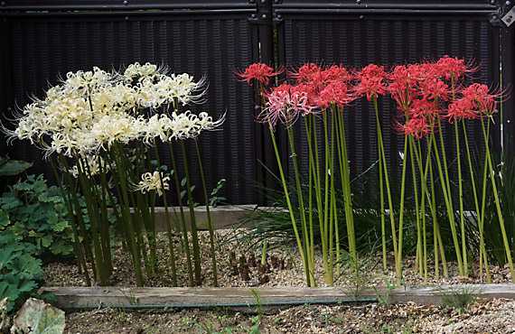 それにしても、赤花の不作ぶりは深刻です。 こちら は昨年9/22の様子ですが、赤花の作況は目を覆いたくなる様な惨状です。原因は昨年初冬に大発生したハマオモトヨトウに、葉と共に球根の成長点を食い荒らされて、以降半年余りを「葉なし」で過ごす羽目に陥ってしまいました。この結果、光合成によるスタミナチャージができなかったため、こんなことになった・・・と考えています。今年花芽を立ち上げられなかった右側の空白域では、既に葉っぱが出始めており、昨年の様なアクシデントがなければ、1年後には原状を回復できるだろうと思っています。