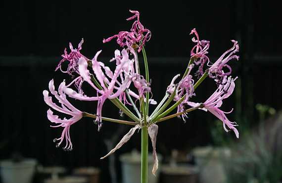 ネリネのもう1品、 ピンク花 の方は全体として半分を少し上回る花を消耗っしてしまいました。こちらもあと2週間もすれば完全に幕引きとなりそうです。これらネリネ2品の後は、さほど間を開けずに雪割草やセツブンソウ、セリバオウレンといった早春の草花にバトンタッチすることになります。