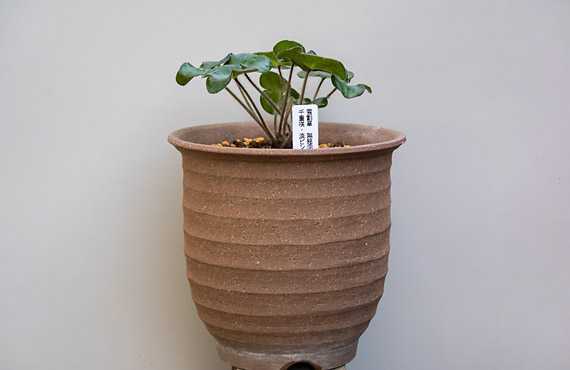 新居として用意したのは5号陶鉢です。常用の鹿沼土、赤玉土を概ね半々に混合した用土で植え付けます。夏場のスタミナ源に供する様、化成肥料を適量添えて作業は修了です。