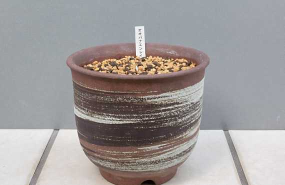もう一つのオオバナエンレイソウも同様の手順で、こちらは少し大きめの 4号陶鉢 に植え付けました。こちらは元気そうな冬芽を用意していて、春の芽出しは問題なさそうです。
