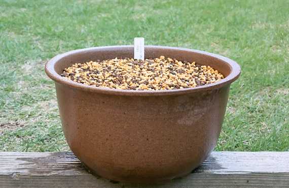 ということで、花芽がポット内でバランスよく立ち上がる様に配置し、新たな用土を被せた様子が こちら です。2週間前に紹介した「鹿島」1番ポットは、塊茎に少なからぬダメージが認められましたが、この「濡燕」1番ポットはそうしたダメージもなく、至って健康な状態が維持されていました。春の花の時が楽しみです。