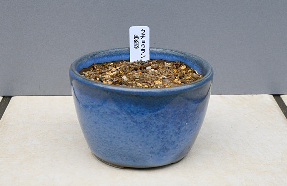 で、そそくさと定植に取り掛かります。新居として選んだのは3号(正確に言えば2.7号)陶鉢です。昨日と同じ用土で植えつけた様子が こちら 。何分にも小粒過ぎて、今年は花付きまでは期待せず、リハビリに専念して貰うことにします。