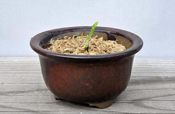 ということで、苗を掘り上げてみると根の1/3ほどが根腐れを起こしていました。これでは成長どころか、己が命を繋ぐのが背一杯だったかもしれません。用意した2号陶鉢に、適度に切り揃えたミズゴケで植え直した様子が こちら 。この夏の間に1節でも成長すればいいのですが ....