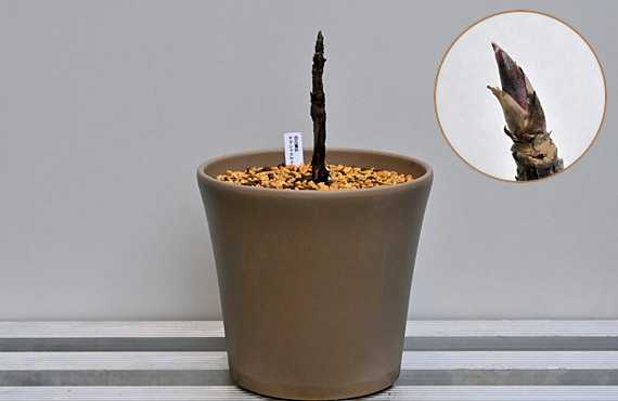 株を掘り上げてみると、まず白いヒゲ根が大量に伸びていて、株の健康状態は問題はなさそうです。そのヒゲ根の奥に隠れた枯死・腐敗した塊根と、新たに発生した脇芽を全て除去して、洗浄した元のプラ鉢に植え戻しました。更なる肥育狙いで適量の化成肥料も施しました。全ての処置を済ませた様子が こちら です。冬芽(円内)は来春の花付きを確信できるサイズではありませんが、祈る気持ちで春を待つことになります。