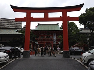 宝塚歌劇を鑑賞した後、生田神社を参拝した。藤原紀香と陣内智則が挙式したところ。この説明は余計か…。三ノ宮駅からいくたロードに曲がってすぐに見える鳥居。駅や飲食店の立ち並ぶ雑踏の中に当たり前のように立っている。この違和感のなさが「生田さん」と地元の人に親しまれる所以かも。鳥居の奥の楼門。目の覚めるような朱塗りが可愛らしい。思いがけず、拝殿の前に茅の輪(ちのわ)。参拝客が茅の輪のくぐり方を書いた看板を見ながら、左へくるくる、右へくるくる。また左へくるくる。生田神社では7月と12月の年2回、祓所において人間が知らず知らずの内に犯してしまった罪や穢れを清める大祓式(おおはらいしき)という神事が行われる。7月15日には夏越の大祓式(茅の輪くぐり)があるため、前もって茅の輪が用意されていたようだ。茅の輪をくぐると、病気や事故などの災いを未然に防いでくれると言われている。いいタイミングで参拝できてありがたい。由緒によると、御祭神は稚日女尊(わかひるめのみこと)天照大神の和魂(にぎたま)あるいは妹神と伝えられる「稚く瑞々しい日の女神様」で、物を生み育て万物の成長をご加護する神様であるらしい。パワースポットと言われている『生田の森』をゆっくり散策したいところだが時間がなくて断念。