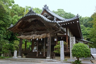 『古事記』によると伊弉諾尊(イザナギ)が黄泉の国から逃げ帰って禊ぎをしたとき右目から生まれたのが月讀尊(ツクヨミ)とされている。文字通り、月の神で、夜を統べる神と言われている。この時左目から生まれたのが天照大神(アマテラス)で、鼻から生まれたのが素戔嗚尊(スサノヲ)とされている。つまり、月讀尊は太陽を象徴する天照大神の弟として誕生した。(素戔嗚尊にとっては兄にあたる)今回の金環日食を神話風にとらえると、数百年に一度、アマテラスとツクヨミが日本の上空で出逢う、まさにその日となる。そこで、月讀尊をお祀りする神社を調べて、阿沼美神社(松山市平田町)に参拝した。鳥居から真っ直ぐに階段を上りきると、目の前に拝殿がある。左手の手水舎で手を清め拝殿に近づいていくと突然音楽が流れ始める。雅楽、たぶん越天楽(えてんらく)。感知式になっているらしい。奥に本殿が続いている。拝殿の左手は竹林になっていて、境内社が二つある。由緒によると、主祭神は大山祇命(おおやまづみのみこと)、配神は高おかみ命(たかおかみのかみ)、月讀命(つくよみのみこと)、雷神(いかずちのかみ)となっている。ちょうど、この狛犬さんの目線の先に私有地とはなっているが、竹林に続く開けた土地がある。そのあたりに立つと、なんとも気持ちがいい。ご神木がわりの竹林かも知れない。